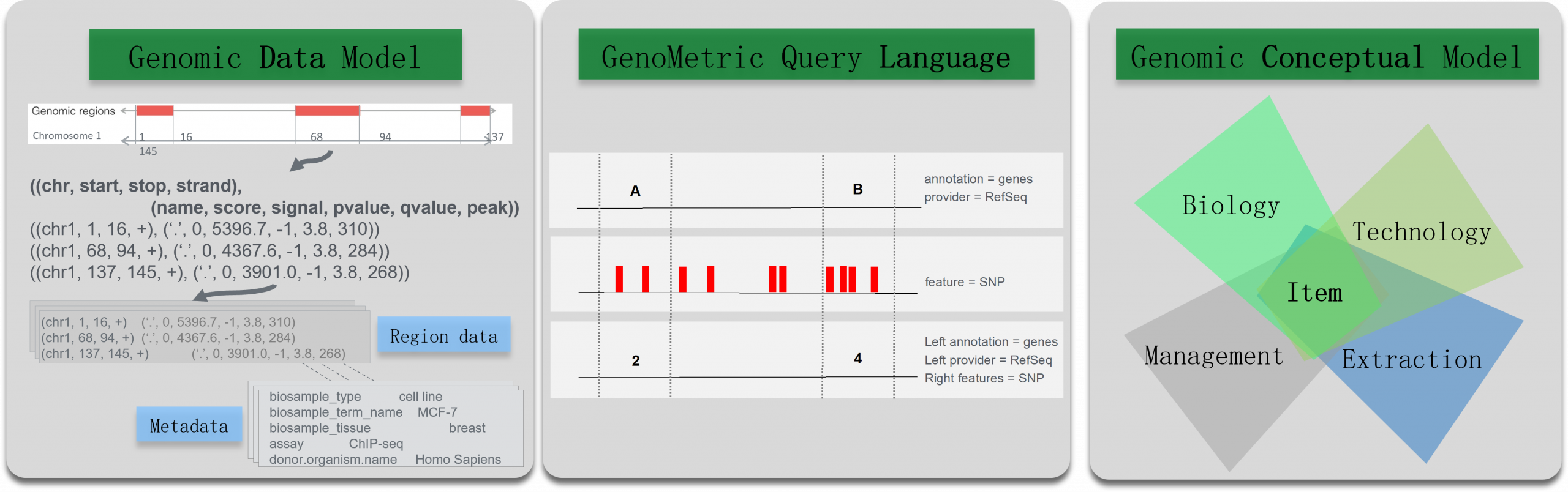 - GenoMetric Query Language: A novel approach to large-scale genomic data management, Bioinformatics, 2015